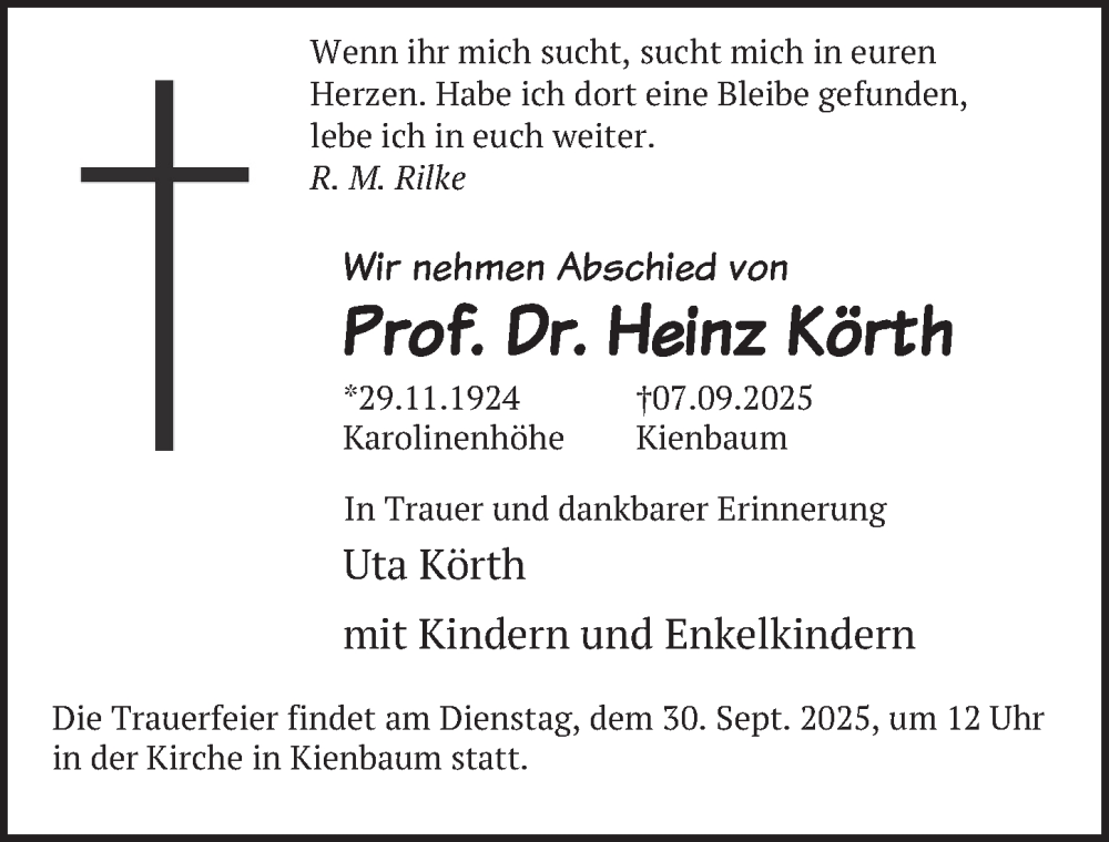 Hier finden Sie alle Traueranzeigen aus der Zeitung, die bisher für Heinz Körth erschienen sind. Weitere Traueranzeigen, die in der Zeitung erscheinen, werden hier ebenfalls aufgelistet